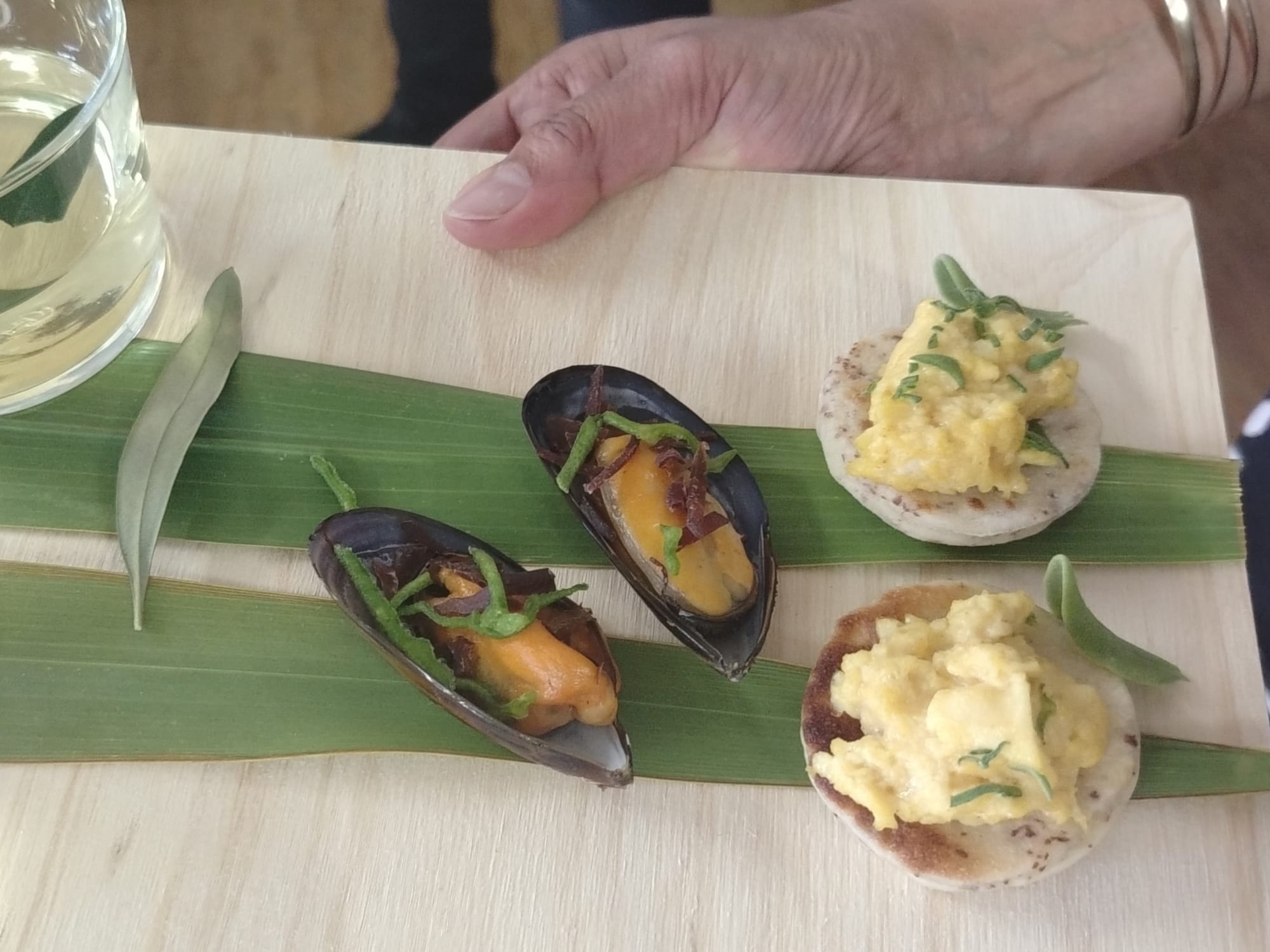 To evoke this time of seasonal abundance and attunement, we feasted on eggs (alas chicken, not ostrich) served on watsonia corm flatbread, with a mussel in its half shell, adorned with juicy, crunchy garnishes of ice plant, soutslaai and wild olive leaf.